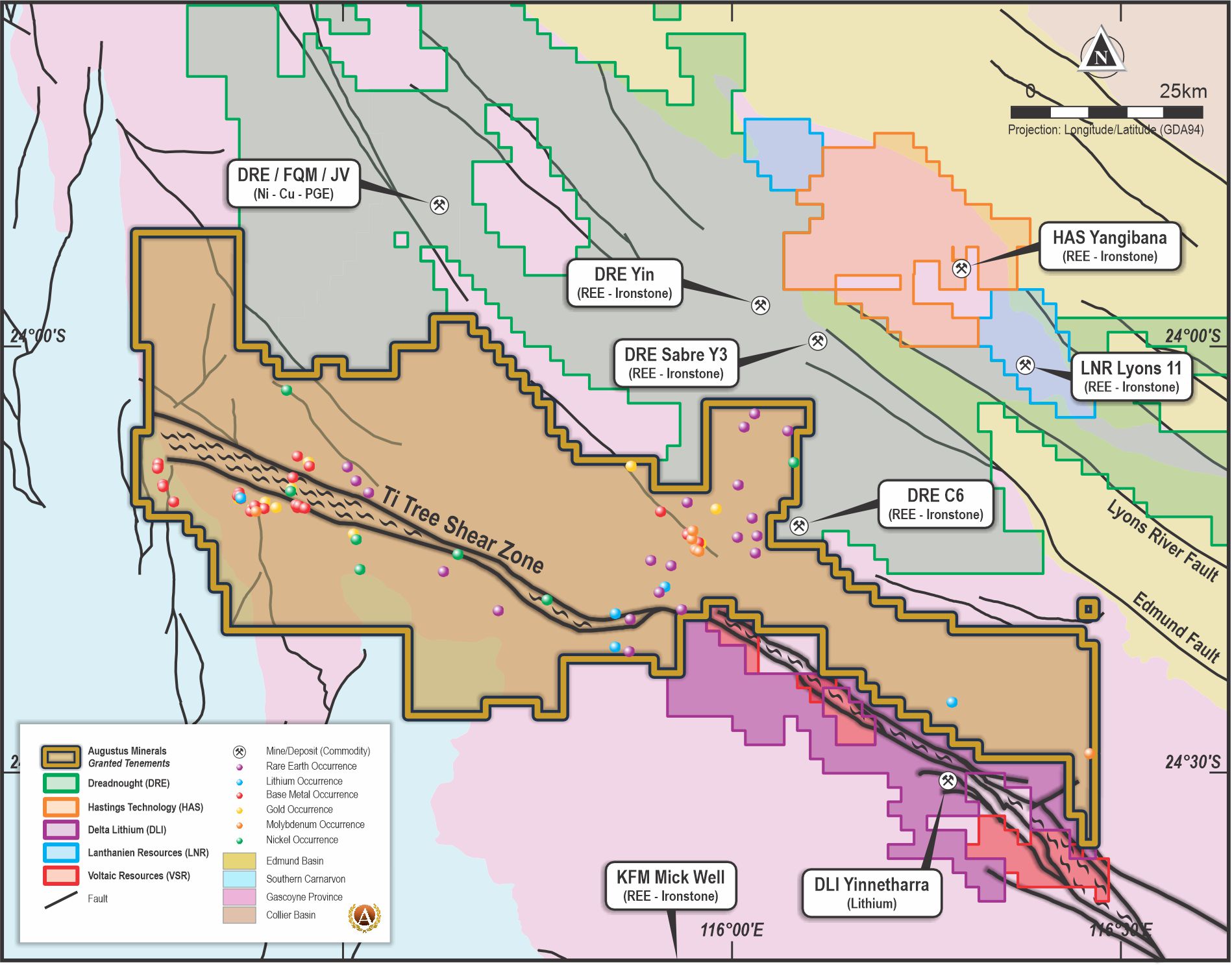 Tenement package contains 85km of the Ti Tree Shear, which is host to most of the existing mineral occurrences in the region.